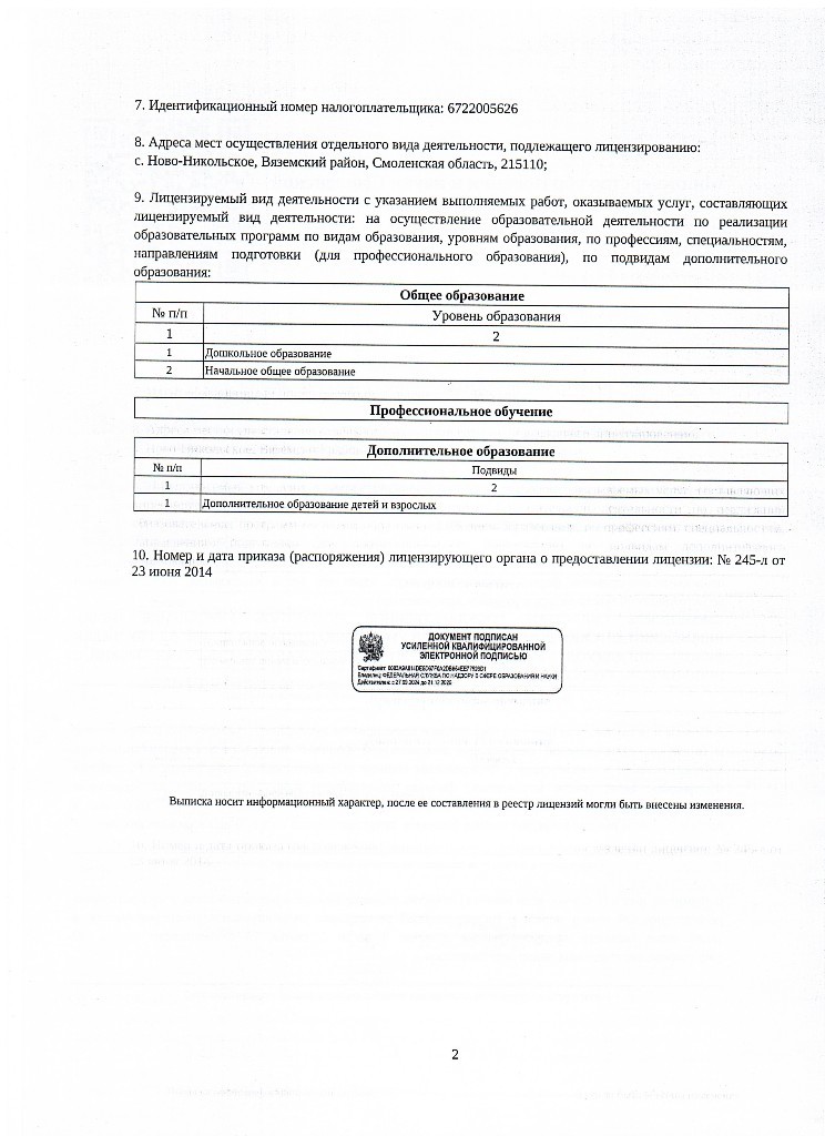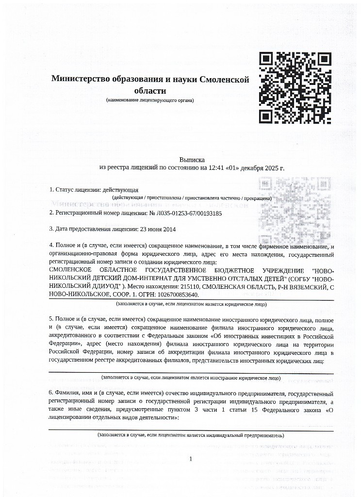Фактический, юридический адрес Учреждения, место осуществления образовательной деятельности: 215110, Смоленская область, Вяземский район, село Ново – Никольское, д.1